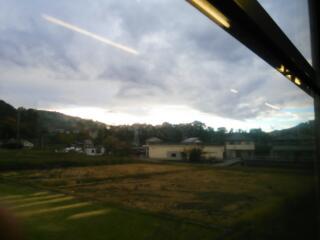 」と思って車窓を見たら、厚い雲の奥から青空が![]()