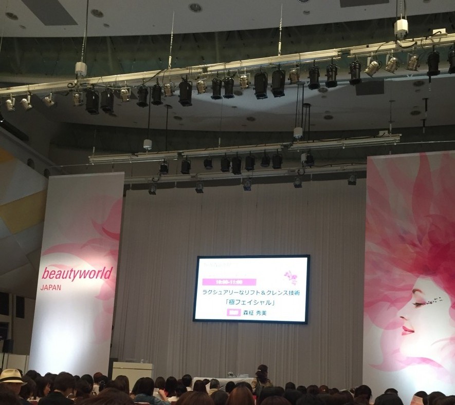お顔だけではなく耳、首筋、背中から腕までケアして美しいライン、リフトアップをつくる『極フェイシャル』の講座でした。朝の10時からのセミナーにもかかわらず250人の座席は満席