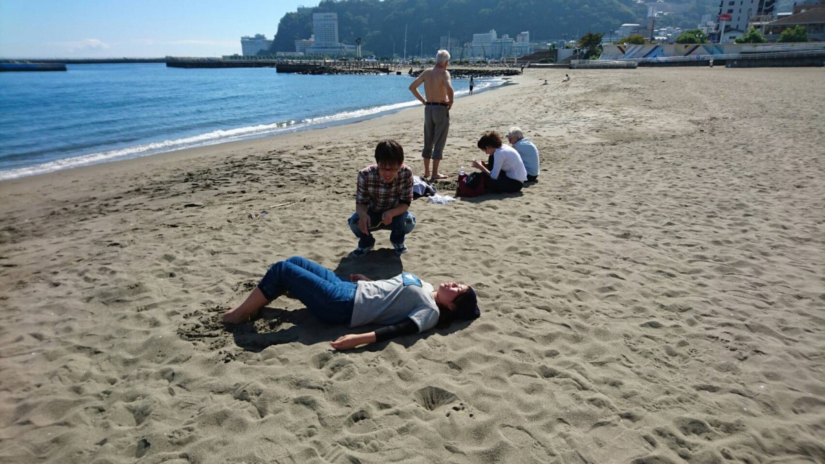 海岸に打ち上げられた井ノ川先生(笑)![]()