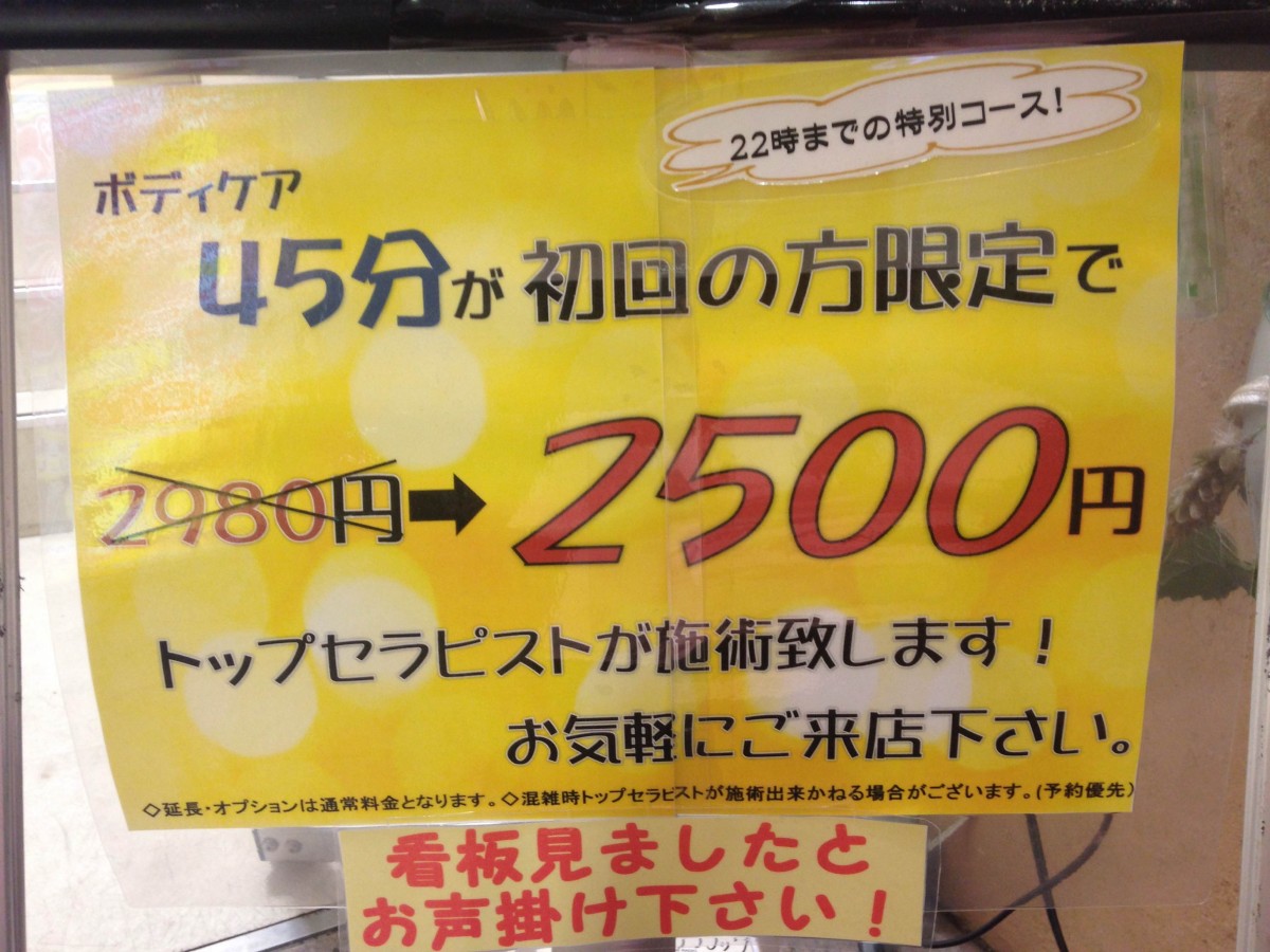 お知らせ2/3 初回来店45分¥2,500-キャンペーン!
