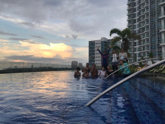 研修旅行2日目、アイランドピクニックの後、島に上陸して写真撮影の後、セブニュータウンのプールに行きました。