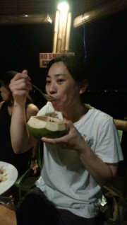 リフレッシュ号にヤシの実売りのおじさんが来て買ってしまったことも、、、。