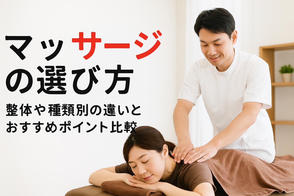 マッサージの選び方を専門家が解説|整体や種類別の違いとおすすめポイント比較
