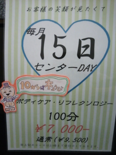 毎月15日のセンターデー。