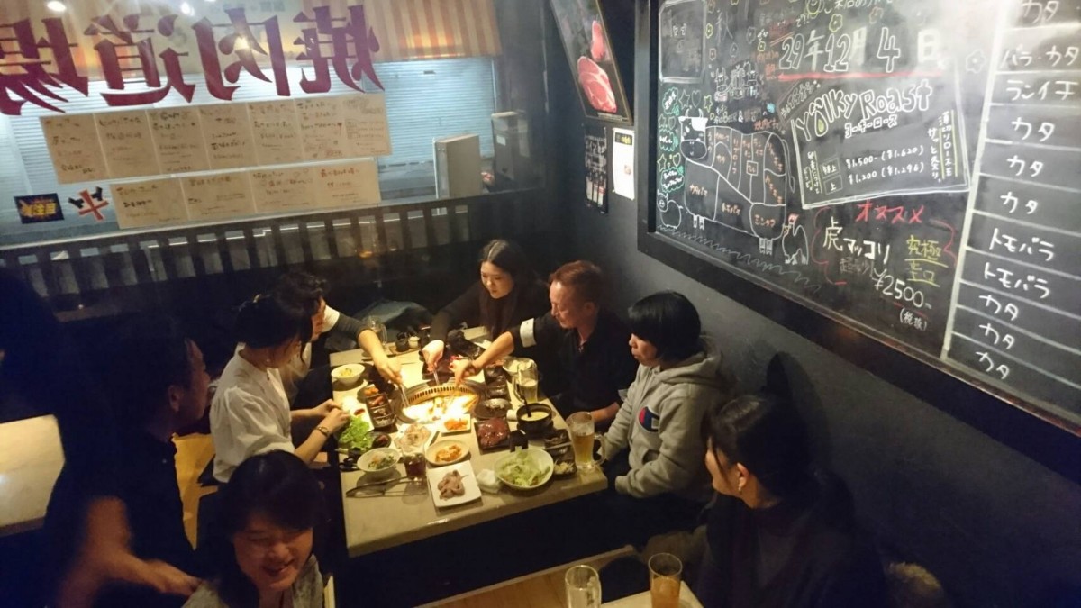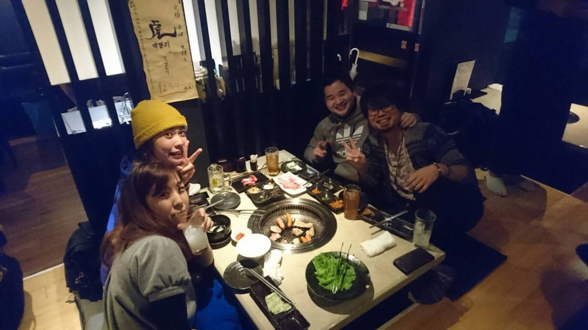 韓国式の焼肉の食べ方で皆おもてなしを受け…