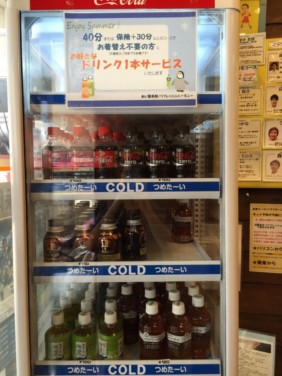 保険治療やリラクゼーションマッサージの後、冷たいドリンクですっきりリフレッシュしてくださいね![]()