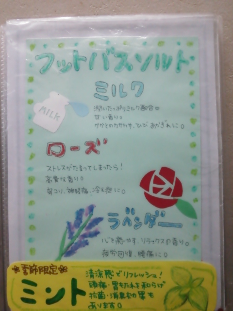 センター店では、いつもご用意している香り(ミルク、ローズ、ラベンダー)以外にも季節限定の香りをご用意しております。