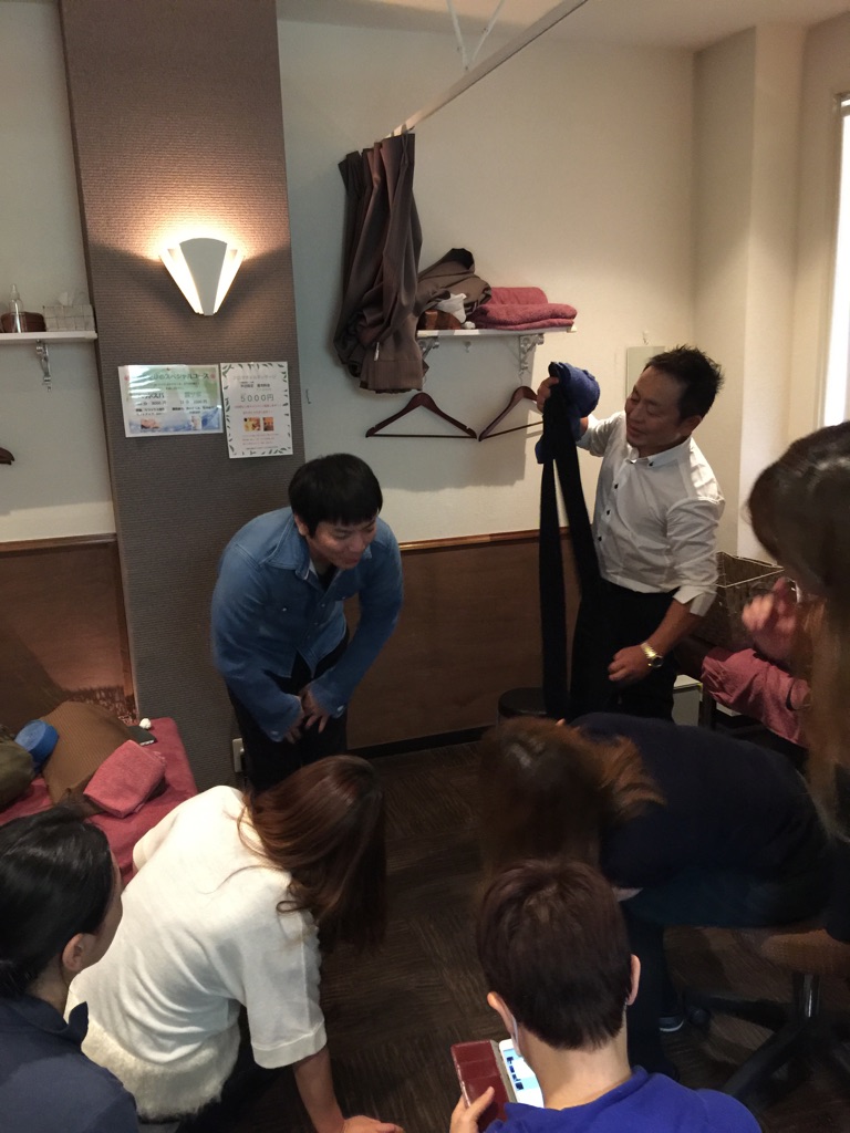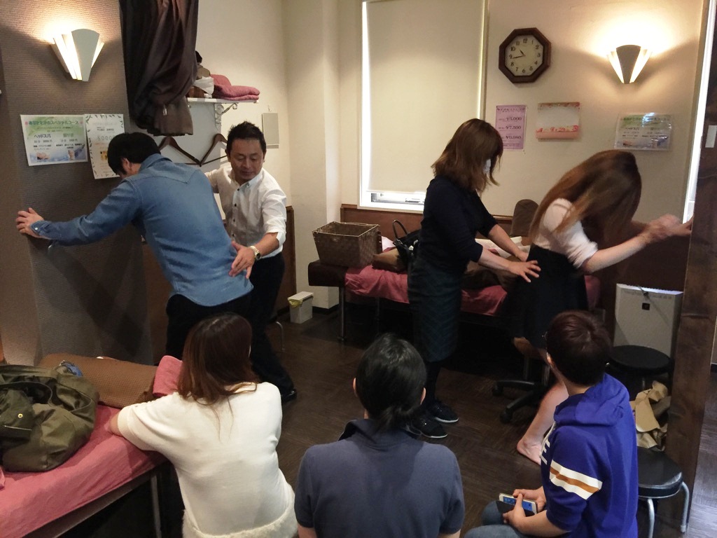 なので、今日のマッサージ講習会では、O脚改善に必要な、『内転筋のトレーニング方法』 と 『 足裏に正しく重心をかけながら歩くこつ』 を指導しました (わからない写真で、申し訳ありません)